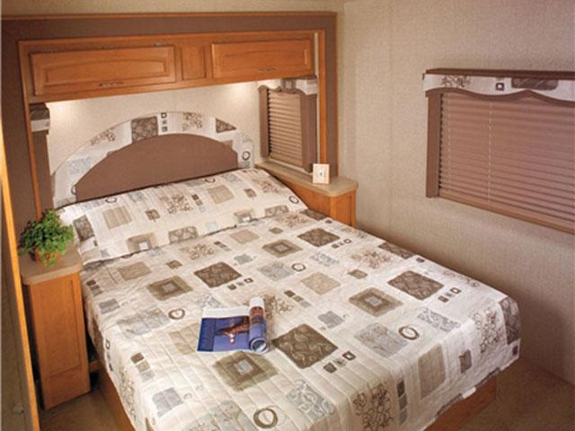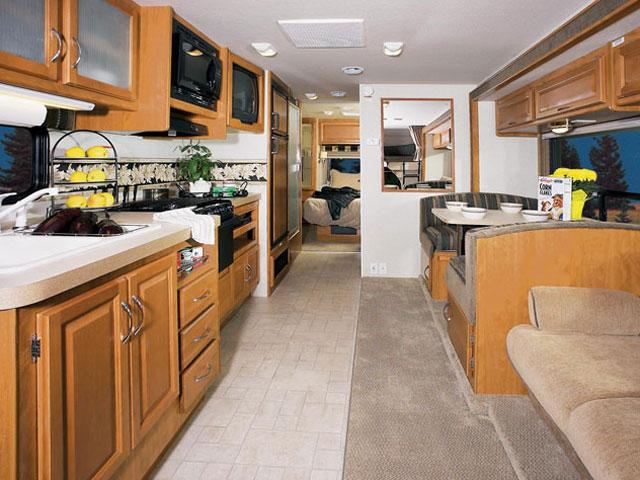Ideal for four adults and 2 children. The single slide-out design guarantees a more spacious living area and a large exterior storage bay. In-dash and Factory roof-mounted air conditioning system provide generous cooling both in the driver’s cabin and in the living area. AM/FM Radio – Cassette or CD, range (stove), microwave, refrigerator, sink, wash basin, shower, toilet, water heater, heater & thermostat. A power generator is located in the external side compartment. The vehicle has a much compact bed configuration to have a more spacious space in the living area. Cab-over Bed that can accommodate 2 persons, Dinette and couch can be converted into two single beds, and a permanent Bed located at the back of the vehicle.