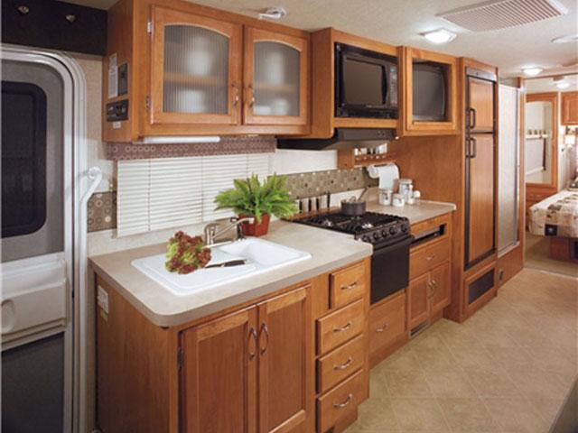 Range (Stove) - Runs on LPG (Liquid Propane Gas). Microwave - This runs only on 110V AC current. Refrigerator - This can be operated on either LPG or 110V AC current. Propane Tank: 41L (11 gal)